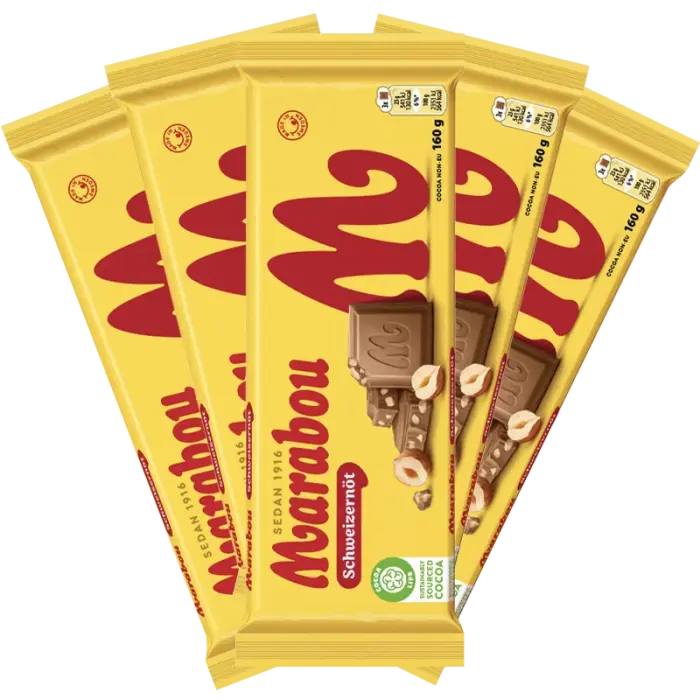 Marabou Schweizernöt on klassinen ruotsalainen suklaapatukka pähkinöillä ja rusinoilla kermamaissa maitosuklaassa. Tämä rakastettu yhdistelmä tarjoaa tekstuureja rapeista pähkinöistä ja pehmeistä rusinoista Maraboun tunnusomaisen maitosuklaan ympäröimänä. Makea suklaa tasapainottuu pähkinöiden runsaalla maulla ja rusinoiden luonnollisella makeudella. Ajaton suosikki, joka on ollut ruotsalaisissa kodeissa sukupolvien ajan.