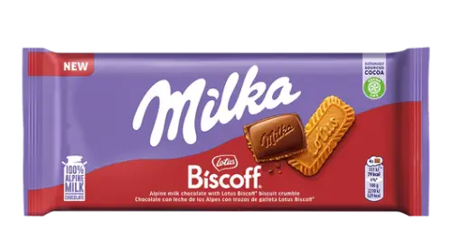 Milka Lotus Biscoff yhdistää kermaisen alppimaitosuklaан ikonisen Lotus Biscoff -keksin muruihin – karamellimainen, mausteinen ja välittömästi tunnistettava Biscoff-maku jokaisessa palassa. Kaksi rakastettua klassikkoa, jotka ovat vihdoin löytäneet toisensa. 🍫🍪