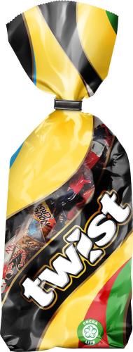 Twist-pussi, 60-luvun suosikki. Jännittävä sekoitus praliineja, joista jokainen löytää oman suosikkinsa, mikä tekee siitä täydellisen jaettavaksi sekä perheen että ystävien kesken.