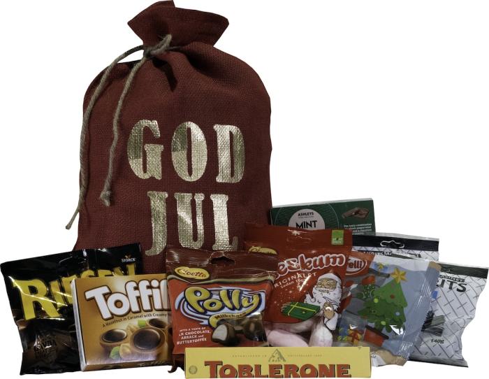 Tämä iso ja klassinen juuttipussi sisältää fantastisen "voileipäpöydän" tuotteista, joita haluaa sekä antaa lahjaksi että nauttia itse.