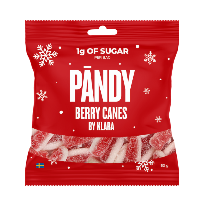 Saatavuus: Varastossa 16 kpl KuvausvartenPändy Candy Berry Canes by Klara 50g