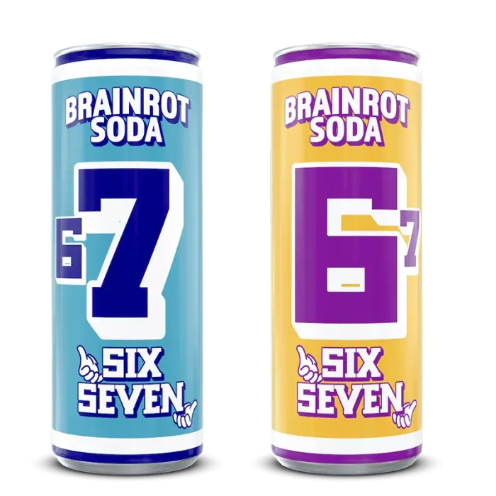 Brainrot Soda Six Seven on limuduo, jossa jokaisella tölkillä on oma identiteetti! Yksi tölkki numerolla 6, yksi numerolla 7 - yhdessä ne muodostavat Six Sevenin. Kaksi ainutlaatuista makua, jotka kuuluvat yhteen mutta seisovat vahvoina yksinään. Täydellinen sinulle, joka haluat jotain erilaista jääkaappiin tai keräät coolia limuölkkejä. Tupla Brainrot-taikuutta!