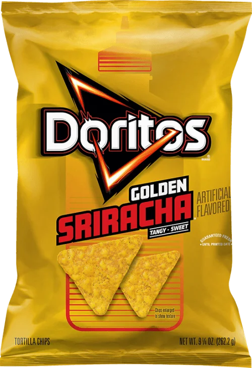 Doritos Golden Sriracha on kun legendaarinen sriracha-kastike kohtaa Amerikan sipsi-ikonin! Inspiroitu keltaisesta ja vihreästä sriracha-suosikista, joka sekoittaa hapanta, makeaa ja ripauksen tulista täydellisessä harmoniassa. Jokainen sipsi tarjoaa rohkean sriracha-twistin klassisella Doritos-crunchilla. Täydellinen sinulle joka rakastat srirachaa mutta haluat sen sipsimuodossa, tai haluat kokea srirachan aivan uudella tavalla!
