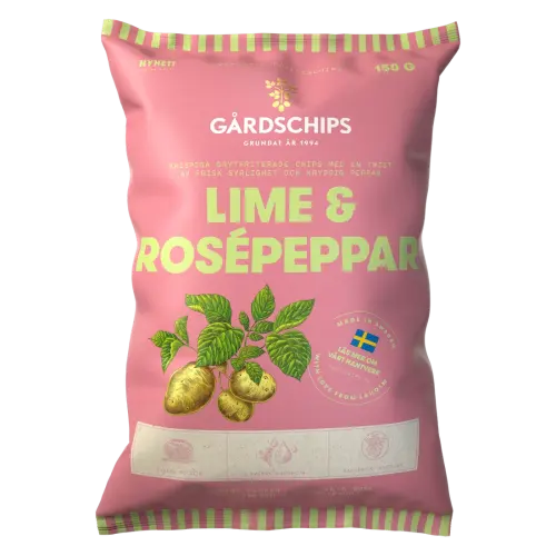 Potatis (67,5 %), rapsolja (26,5 %), kryddblandning (6%): druvsocker, salt, socker, surhetsreglerande medel (natriumdiacetat, citronsyra, mjölksyra), rosépeppar, svartpeppar, limejuicekoncentrat, jästextrakt, kryddor/kryddextrakt, lök, citronextrakt, arom.