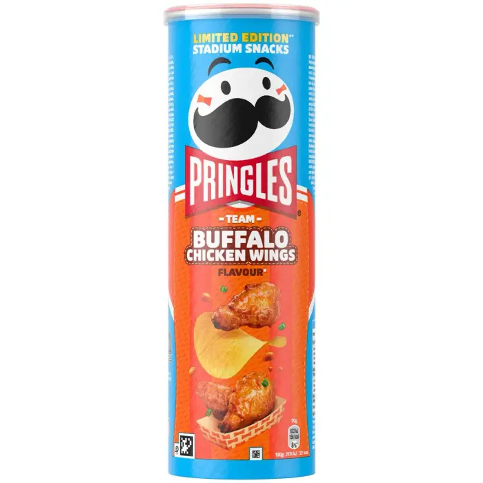 Matchday purkissa! Pringles Stadium Snacks Buffalo Chicken Wings on limited edition -maku oikeille urheilufaneille. Klassiset Pringles tulisella, happamalla buffalo-kastikkeella ja aidolla chicken wings -maulla - kuin istuisi katsomossa mutta kotisohvalla. Täydellinen otteluun, peliiltaan tai kun haluat vähän amerikkalaista stadion-fiilistä! 🏈