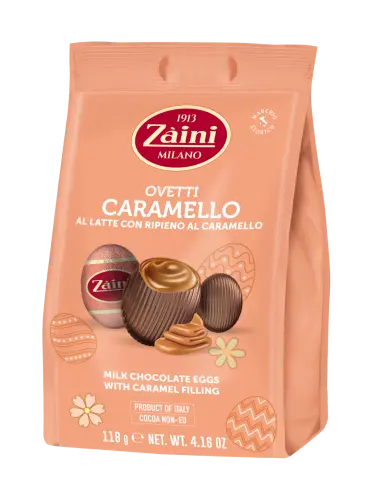 Påskens mykeste godbit! Zaini melkesjokoladeegg med karamellfylling er for deg som elsker kombinasjonen av søtt, mykt og ekstra lent. Et kremete melkesjokoladeegg med smeltet karamell som renner ut ved første bit. Perfekt balanse mellom myk sjokolade og søt karamell som forgylles påsken. Perfekt som gave eller når du vil unne deg noe virkelig luksuriøst i påskhelgen! 🥚