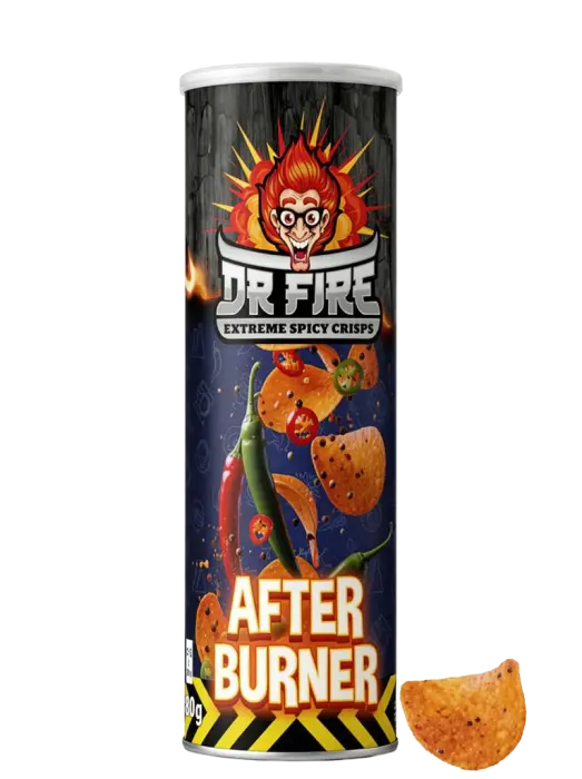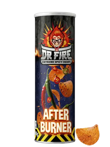 Jälkipoltto joka ei hellitä! Dr Fire Extreme Spicy Crisps After Burner on sipsit, jotka jatkavat polttamista kauan viimeisen palan jälkeen. Äärimmäisen tulisia ja mausteisia sipsejä useilla tulisuuden kerroksilla - täydellinen sinulle joka ajattelet että tavalliset vahvat sipsit ovat liian kesyjä. Varoitus: tulisuus kasvaa joka palalla eikä päästä irti! 🔥💀