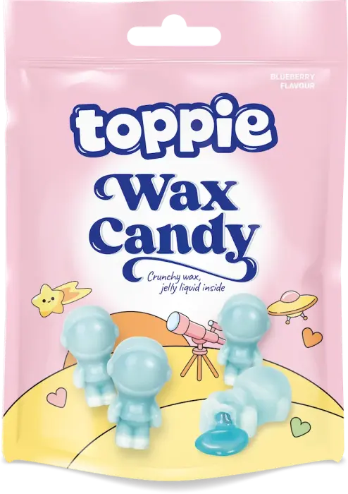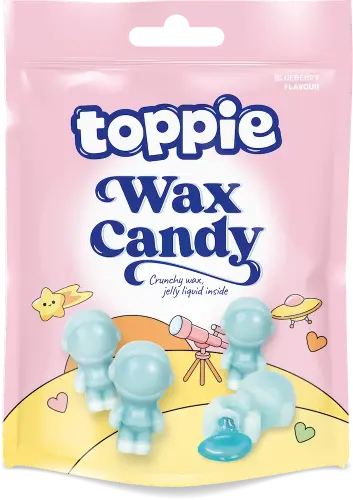 Astronautit salaisella täytteellä! Toppie Wax Candy Blueberry on suloiset astronautit rapealla vahakuorella ja hyytelömäisellä mustikkanestettä sisällä. Ensin purat, sitten maku räjähtää! Täydellinen lapsille jotka rakastavat sekä avaruutta että karkkia, tai aikuisille jotka muistavat Wax Bottlet ennen. Pieni astronautti, suuri makukokemus! 🚀💙