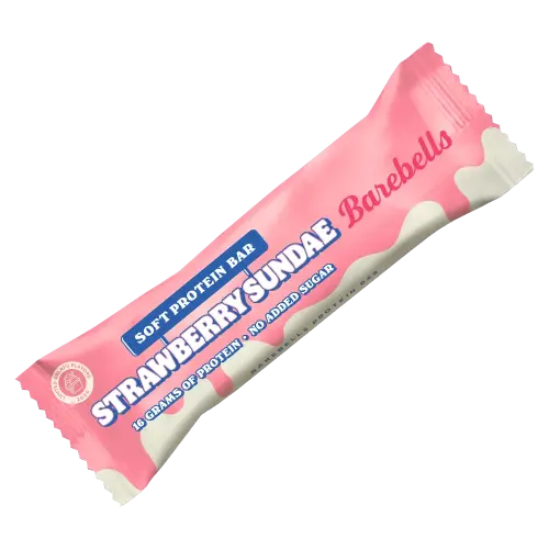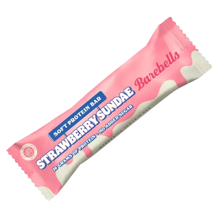 Barebells Soft Strawberry Sundae on pehmeä proteiinipatukka mansikkajäätelön maulla – makea, kermainen ja 16 grammaa proteiinia ilman lisättyä sokeria. Limited edition gelato-versio, joka maistuu jälkiruoalta mutta toimii treeniruokana. Kuntosali ei ole koskaan maistunut näin hyvältä. 🍓🍨