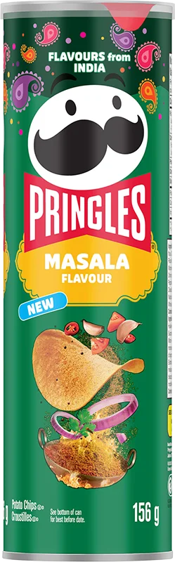 Pringles Masala on rapeita perunasipsejä maustettuna kurkumalla, mustapippurilla ja ripaus valkosipulilla – mieto, maanläheinen maustesekoitus, joka lämmittää sopivasti ja maistuu enemmän jokaisella sirussa. Aasialaisen keittiön inspiroimana ja mahdoton laskea käsistä. 🌶️✨