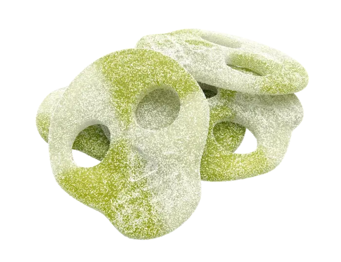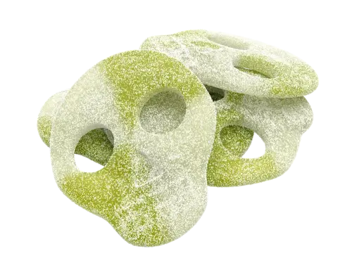Pääkallot omenapurauksella! Candy People Sour Apple Skulls on happamat pääkallot omenamाulla ja vaahtokarkin kaltaisella koostumuksella. Makeita, happamia ja vähän pelottavia - täydellinen tasapaino hedelmäisen ja hapaman välillä. Täydellinen sinulle joka rakastat sekä happamia karkkia että vähän synkkää huumoria, tai vain haluat hyviä karkkia asenteella! 💀🍏